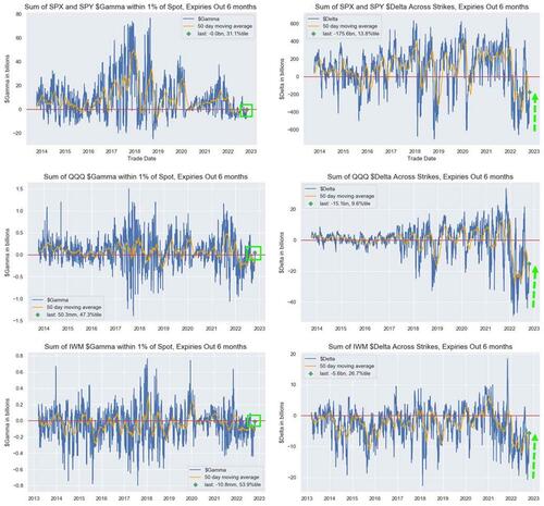 There is this idea prevailing here that traders are essentially net short puts here, and long calls. This creates “grind down” declines in markets, but jumpy upside moves.
