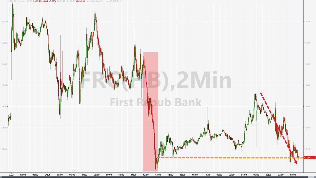 Realizing it’s just a matter of time before the next systemic crisis tips the banking sector over, over the weekend, a coalition of midsize US banks asked federal regulators to extend FDIC deposit insurance for the next two years, so as to alleviate any fears which could result in a wider deposit run on regional and community banks.