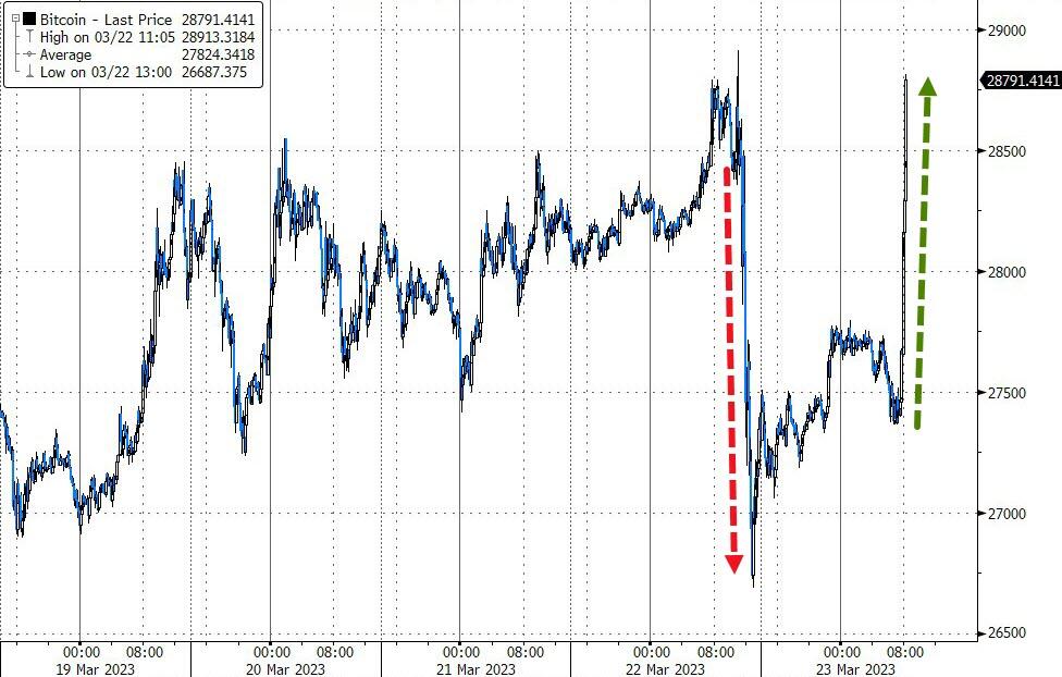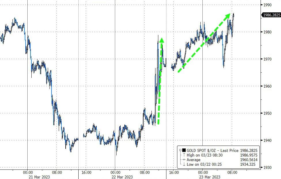 The logical outcome is that the Fed will have to increasingly accept poorer quality collateral — especially from smaller banks, with their large exposure to residential and commercial real estate. We have been here before, when during the pandemic the Fed began to accept the corporate debt of even junk-rated companies (and when gold and bitcoin hit record highs).