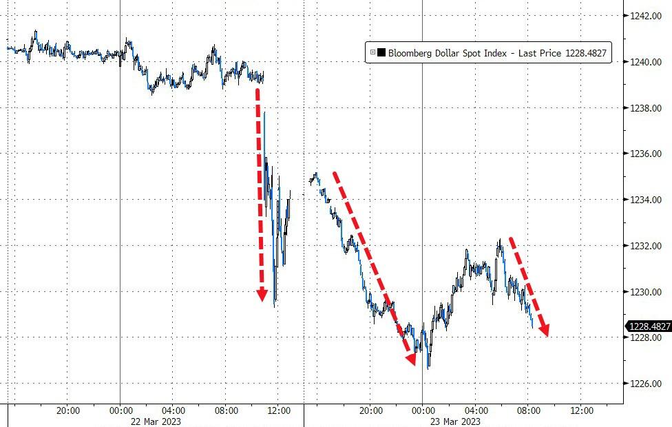 As Simon White writes today, “a full guarantee of all bank deposits would spell the end of moral hazard disciplining banks and mark the final chapter of the dollar’s multi-decade debasement.” And yet that’s where we are headed, even if with a few hiccups along the way, because as White also notes, with the latest banking crisis in the US, it’s the clean-up that could end up doing far more lasting damage. That’s because with the failure of SVB et al prompted the FDIC to guarantee that all depositors will be made whole, whether insured or not