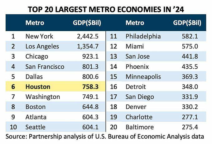 About that job growth: Houston real estate experts @Houstonomics just revealed that Houston became the 6th largest metro economy in 2024 (most recent data), and became the second fastest growing city out of the country’s 20 largest metro economies.