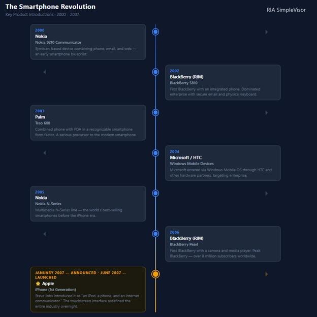 The timeline below shows the various smartphones that preceded Apple’s iPhone. Given the smartphone landscape today and the fate of the products that preceded the iPhone, it’s fair to say that Apple’s patience was well rewarded.
