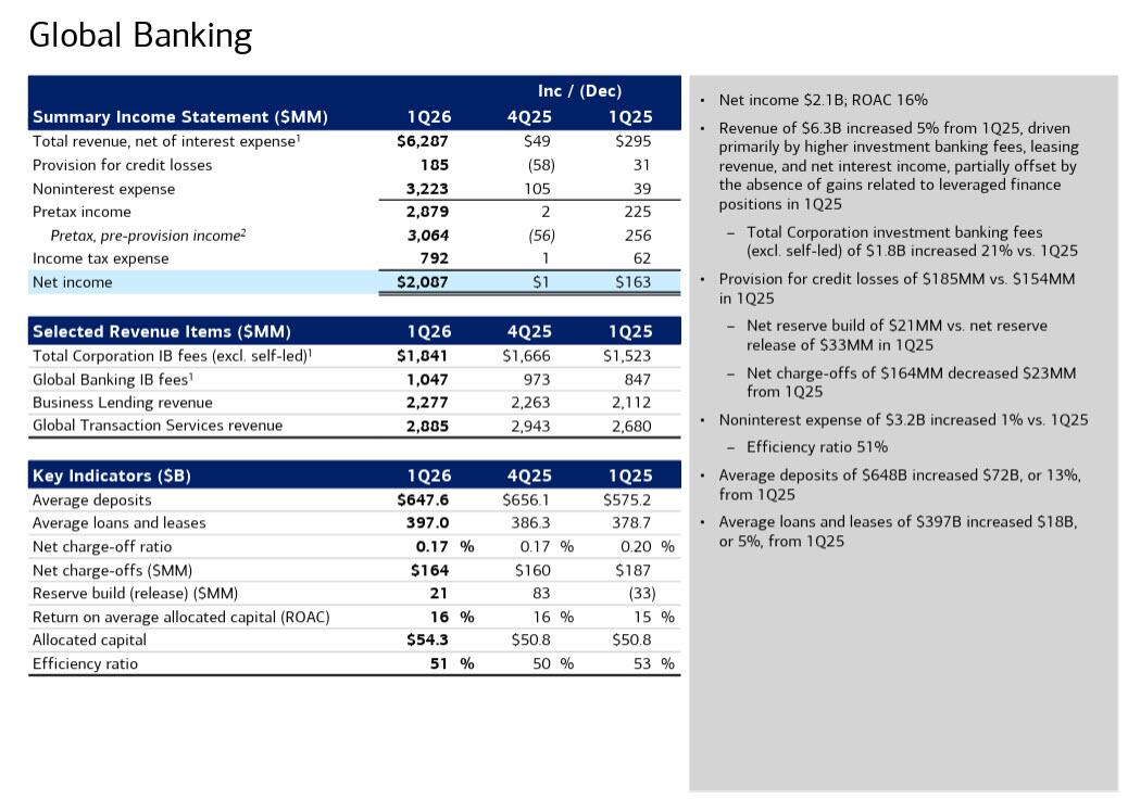 In its earnings presentation, BofA highlighted solid growth across most segments…