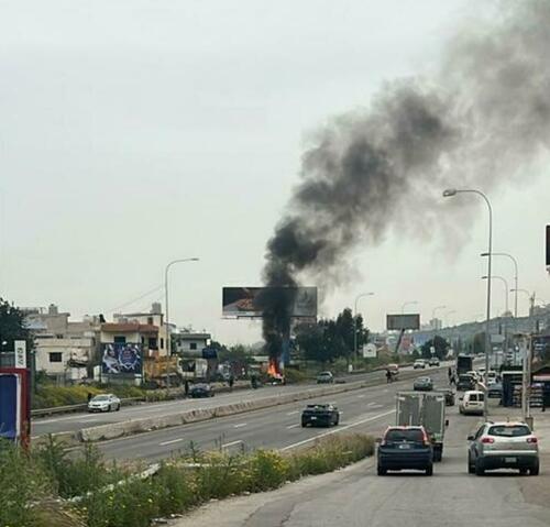 An Israeli drone strike on the Jiyeh road, Lebanon