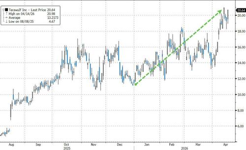 TeraWulf shares are up 80% YTD. Source Bloomberg