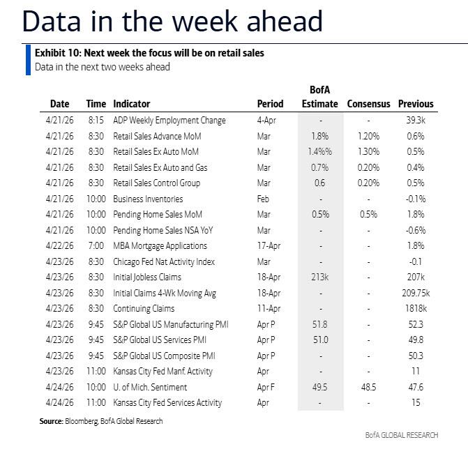 Finally, looking at just the US, Goldman writes that the key economic data release this week is the retail sales report on Tuesday. Fed officials are not expected to comment on monetary policy this week, reflecting the blackout period ahead of the May FOMC meeting. Fed Chair nominee Kevin Warsh will have his nomination hearing on Tuesday.