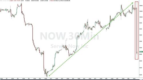 Perhaps indicative of the fragility of the current rebound – as Software stocks have recently ripped higher for 8 straight days – SaaS stocks are all deeply in the red after-hours as ServiceNow – the potential poster-child for AI disruption – cut its margin outlook amid lackluster results, sending shares reeling.