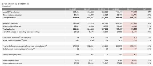 One key metric that is also key to Elon Musk’s pay package, is active FSD subscriptions. They were up slightly this quarter to 1.28 million from 1.1 million at the end of 4Q, and up a whoppint 51% YoY.