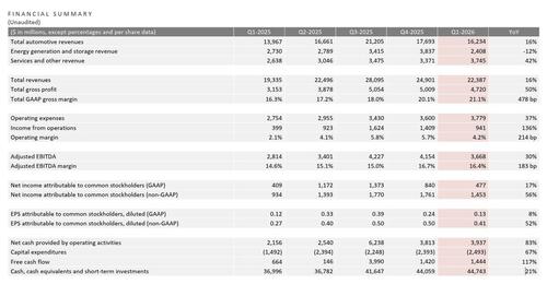Others, like Adam Sarhan, of 50 Park Investments, were also happy: “The real story isn’t just these numbers — it’s the execution on the roadmap. The trajectory feels constructive. Longer term, I’m still very bullish on Tesla’s positioning in AI, robotics, and energy. These results show resilience and set up better comps ahead. The market will digest the forward commentary tonight, but the fundamentals are pointing up.”