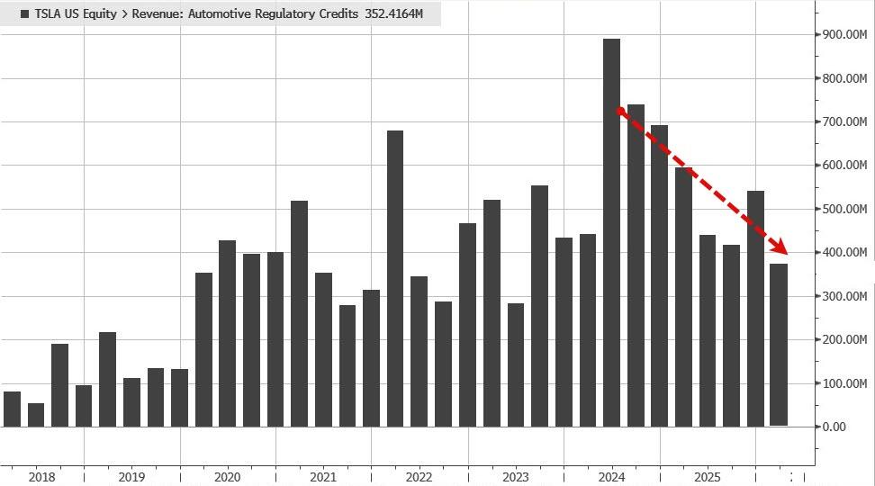 Meanwhile, earnings continue to subsist heavily on a diet of regulatory credit sales, which in Q1 dropped to 381 million from $337 million a year ago, and net interest income.