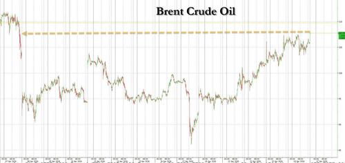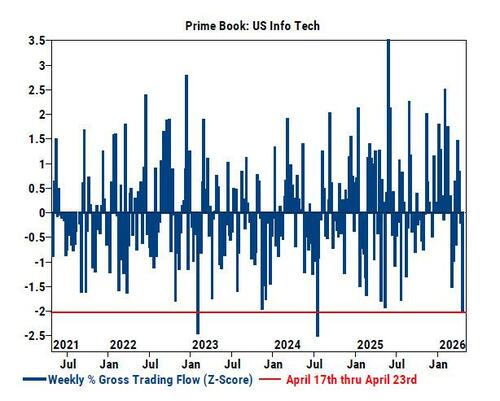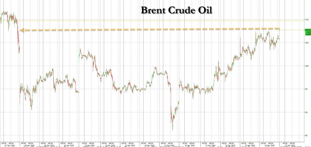 The soft start to a very busy week – the bulk of the S&P is set to report in the next few days including most Mag 7s (MSFT, AMZN, META, GOOGL, AAPL) – comes after efforts to resume US-Iran peace talks collapsed over the weekend when Trump abruptly canceled a planned trip by his top envoys and Tehran said it won’t negotiate under threat. The setback adds to concerns for global equities at or near record highs (hedge funds just sold the most tech stocks in two years) with Brent crude oil rising to a 20 day high elevated bond yields from Sydney to London driving up borrowing costs.