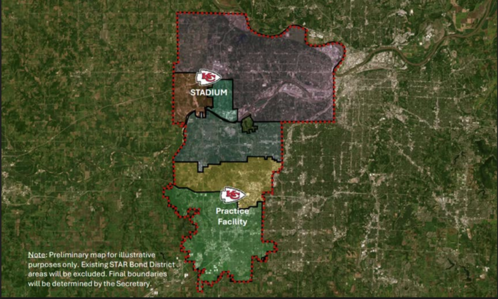 In fact, large portions of the proposed Sales Tax and Revenue (STAR) Bond District are closer to the Chiefs’ current stadium in Missouri than they are to the new Kansas stadium site. But under the logic of Kansas politicians, those communities will somehow economically benefit from being further away from an NFL stadium than they are today.