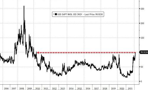 U.S. index futures jumped along with Asian and European markets, while the VIX declined for a fourth consecutive day, setting up Wall Street for a strong open as bond markets stabilized bringing some respite for markets whipsawed in recent weeks by concerns about tightening monetary policy. As of 730am ET, S&P emini futures rose 38 points or 0.84%, while Nasdaq futures were up 1.3% or 187 points, while Dow futures were up 0.60% or 215 points. The 10-year U.S. Treasury yield retreated from levels last seen in 2019, dropping from 1.97% at their high yesterday to 1.92%, and yields across Europe also fell after France’s central banker said markets may be getting ahead of themselves in pricing rate hikes for this year. A dollar gauge slipped and cryptos jumped.