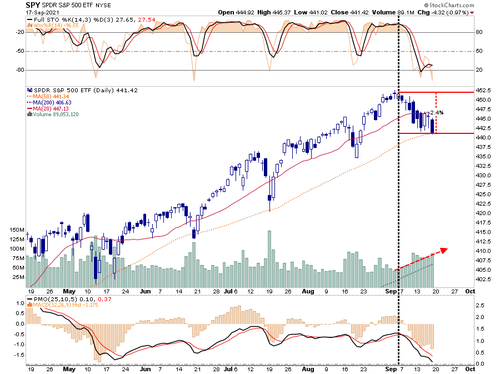 “With sell signals in place, volume rising, and breadth weak, a retest of the 50-dma early next week will not be a surprise. The question will be whether traders show up again, as they have done every other time over the last 6-months to ‘buy the dip.’
