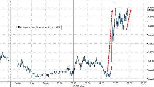 With bonds turmoiling in the past 10 minutes following the latest round of shockingly hawkish comments from the Fed’s Bullard, some suggested that it may not be the worst idea to push back today’s $23 billion 30-year Treasury auction to tomorrow…