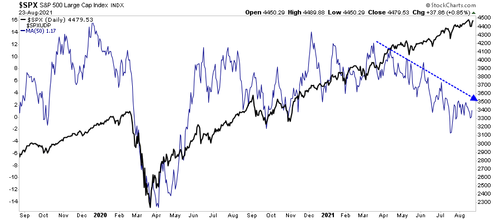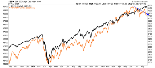 Overnight, Chinese tech stocks struggled to extend their rally into a third day as bargain hunters retreated amid lingering concerns about how far Beijing may push its clampdown on private enterprise. Tensions return after SEC chair Gary Gensler pledged to enforce a three-year deadline for U.S.-listed Chinese firms to permit inspections of their financial audits or face delisting. Traders are also anticipating the Federal Reserve’s Jackson Hole policy symposium later this week which focuses on J-Powell’s 10am Friday speech.