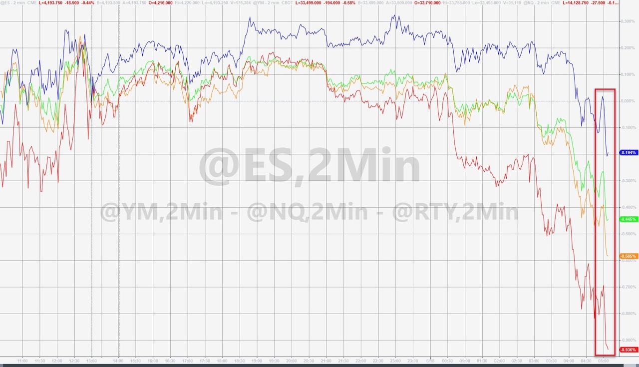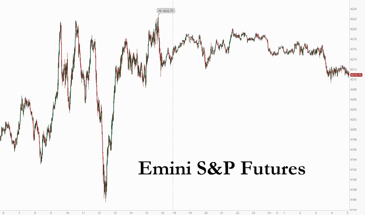 … worlds stocks were stuck just below record highs on Friday, with investors left looking for direction after digesting the U.S. Federal Reserve’s more hawkish stance (which has since been re-evaluated as bullish), while S&P futures are deathly calm with the emini trading unchanged following Thursday’ turbulent session, which saw the unwind of reflation trades resulting in a huge divergence between soaring growth (QQQ) and sliding value (IWM) stocks as markets repriced inflation expectations and as yields tumbled following Wednesday’ hawkish shock.
