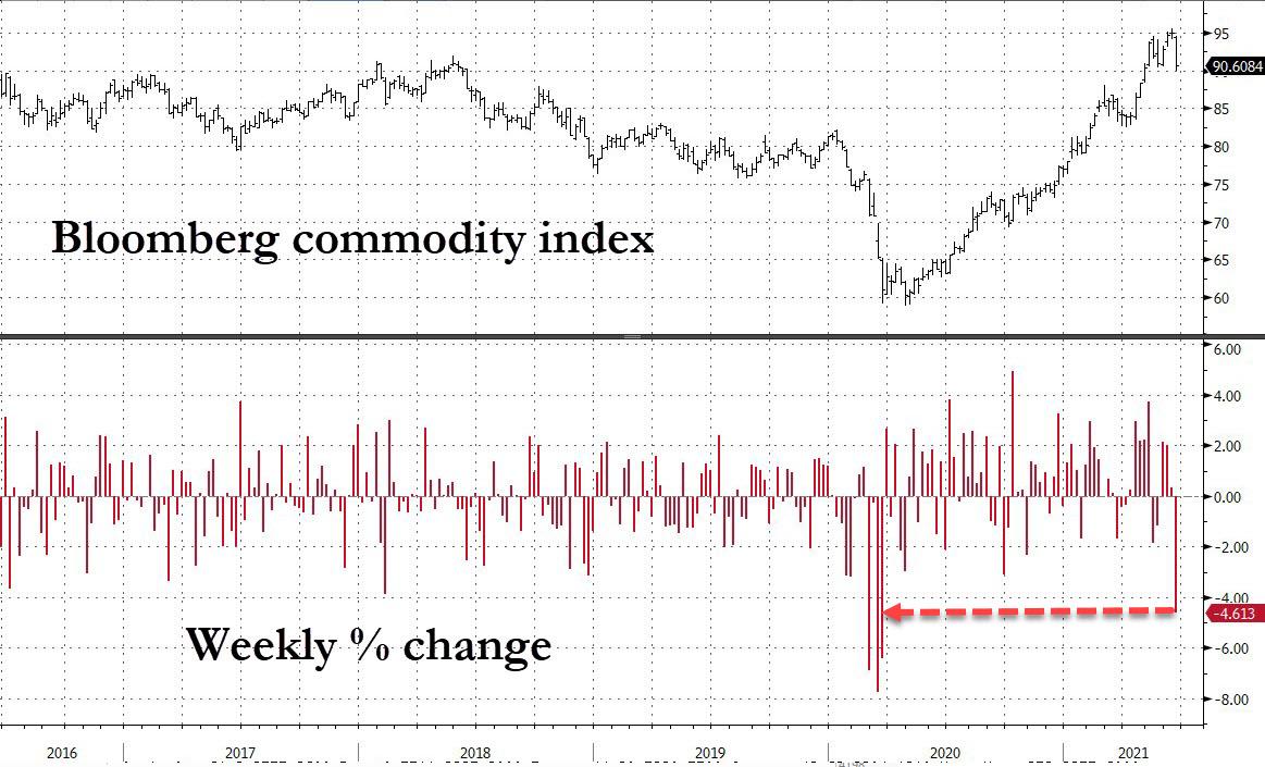 Markets that are clearly benefiting from the reopening are seeing a pullback, with copper heading for its worst week in more than a year. The Bloomberg Commodity Index is on course for its steepest weekly slump since March 2020.