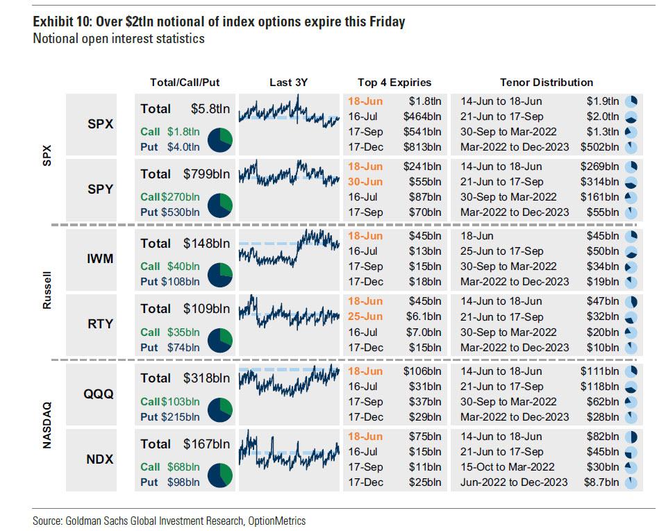 With traders on edge ahead of today’ massive quad (or triple for the anal purists) witching opex, in which over $2.2 trillion in index option gamma is set to expire potentially unleashing a burst of volatility across risk assets…