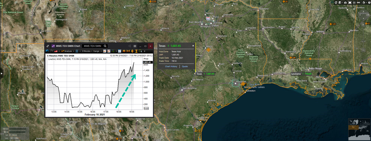 ERCOT wholesale electricity prices topped the grid’s price cap of $9,000 per megawatt-hour several times in the overnight session. Reminding readers, ERCOT prices are usually around $25/MWh.
