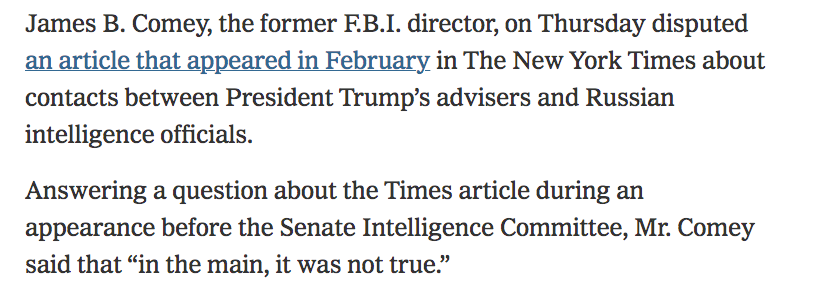Four “current and former American officials,” citing a “trove of information the FBI is sifting through,” said the Trump campaign had “repeated contacts with senior Russian intelligence officials.” Months later: