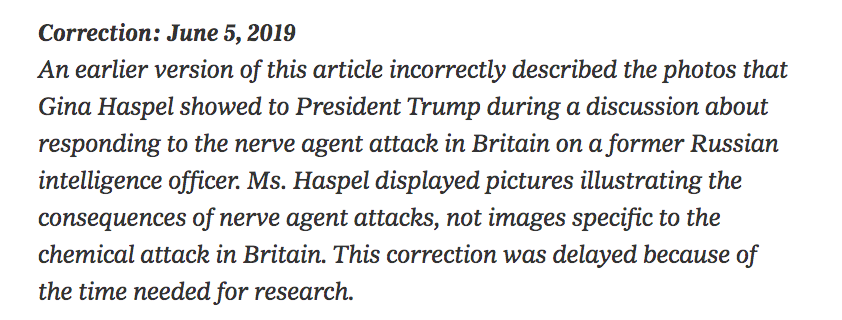 “Current and former intelligence officers” told the New York Times that CIA director Gina Haspel showed Donald Trump pictures of British children sickened, as well as ducks killed, by a Russian assassination in England using the deadly nerve agent Novichok. It turns out there were no such sick children or dead ducks, and Haspel didn’t show such pictures, an error the Times chalked up to lack of research time: