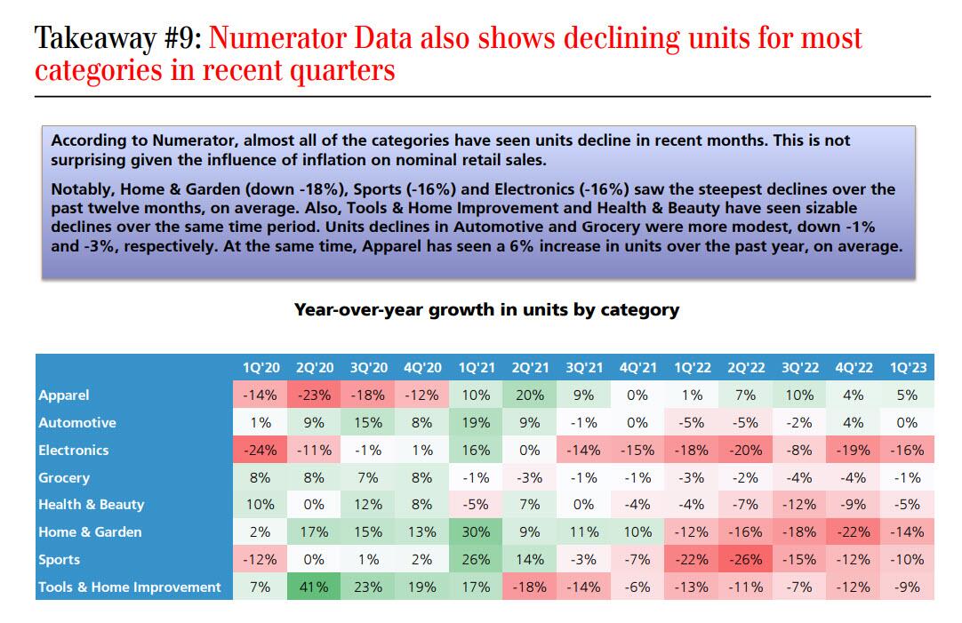 “This simply implies that there will be -5% fewer stores by the end of ’27. As this happens, we believe this trend will benefit the large, well-capitalized retailers HD, LOW, WMT, TGT, COST) and those with unique differentiations (FND, ASO, EYE) who stand to capture a disproportionate amount of market share.” In other words, just like with US banks, the big players will only get bigger while the small ones disappear.