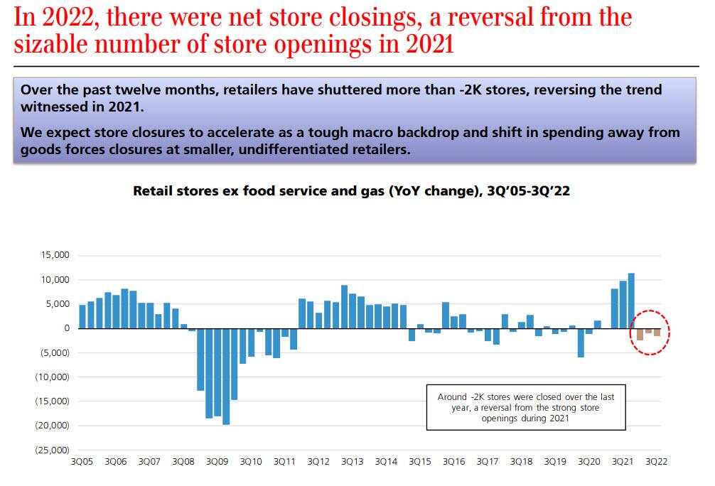 • Takeaway #3: In 2022, there were net store closings, a reversal from strong store openings in 2021