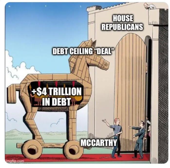 Still, to Kevin McCarthy who “negotiated” on behalf of America’s conservatives, that paltry, laughable nominal “spending reduction” was apparently something to be very proud of, as he repeatedly pointed out on his twitter feed…