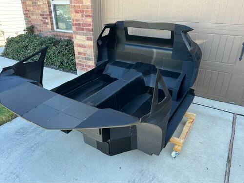 To complete the build, the seller says the body will still need to be reinforced with fiberglass, mounted to a steel frame, and fitted with a drivetrain, suspension, and interior (view listing here).