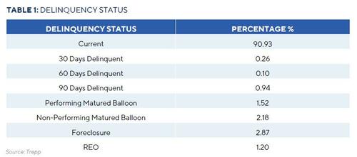 In addition, roughly 40% of the newly delinquent loans this month were considered performing matured balloon last month. Continuing the sideways delinquency trend as loans mature, go delinquent, cure, and become delinquent again.