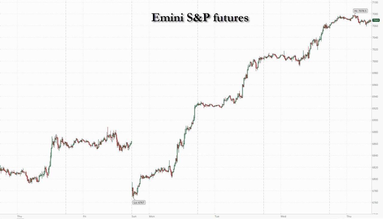 “The Roaring 2020s Are Back”: S&P Futures Hit New Record With Nasdaq Up 12 Straight Days On Iran Truce Optimism