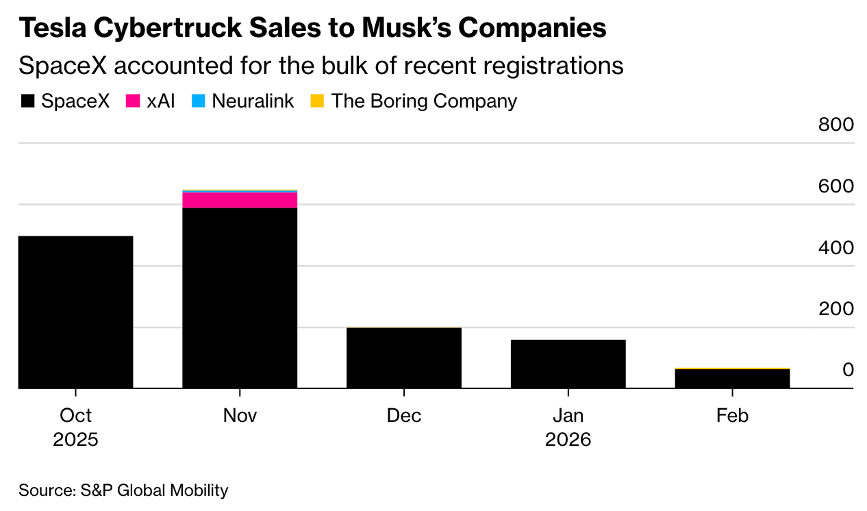 “That means almost one in every five Cybertrucks registered during the period were delivered from one part of Musk’s sprawling business empire to another,” Bloomberg’s Dana Hull noted.