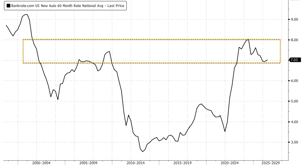 High sticker price and elevated interest rates are likely major factors behind the Cybertruck’s dismal sales. Bankrate data show the national average 60-month loan rate for new vehicles is still above 7%, down from 8% during the Biden years but still sharply higher than the sub-4% levels seen in 2021.