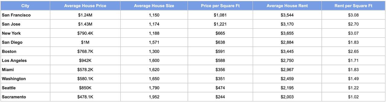 At the center of this trend is San Francisco, which ranks as the most expensive housing market in the country for both buyers and renters. Homebuyers in the city pay more than $1,000 per square foot on average, with a typical home costing around $1.24 million for just over 1,100 square feet. Renters face similar challenges, with average monthly rents exceeding $3,500. Despite these high costs, the amount of space available remains limited, meaning residents often pay a premium for relatively small living areas. This imbalance between price and space has made San Francisco the clearest example of how housing value has eroded in dense urban markets.