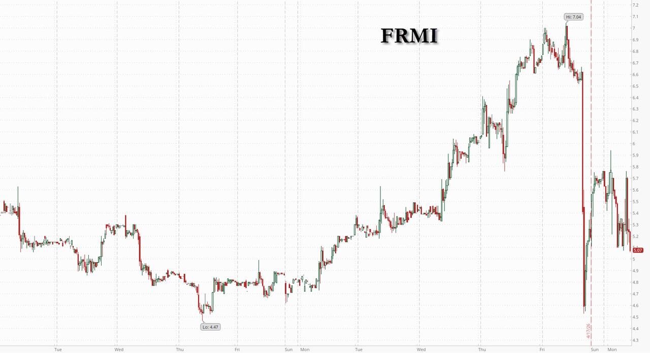 FRMI shares fell as much as 22% Monday, the most intraday since March 30 when the company said on an earnings conference call that it still hadn’t signed up customers for the campus, which it’s calling Project Matador. Fermi has slumped 69% since its initial public offering last year, giving it a market value of $4.1 billion.