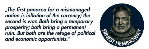 This has always meant “temporary prosperity followed by permanent ruin” created by a handful of “political and economic opportunists,” who, as Hemingway warned, take their nations toward currency destruction and war – the very scenario in which we now openly find ourselves.