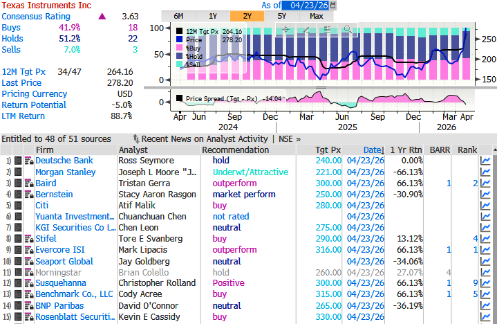 - “Texas Instruments’ 1Q results and 2Q outlook significantly beat consensus, solidifying a robust and broad recovery across its industrial markets, likely aided by new data-center sales”