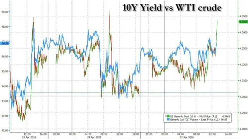 Overall, this was a stronger auction than this morning’s 2Y sale thanks to the surge in foreign buyers, which probably offset concerns about the 11th tail in a row. Even so, 10Y yields have pushed to session highs, rising above 4.34% although that’s due to the continued rise in oil which remains the only thing that the bond market is focused on for now.