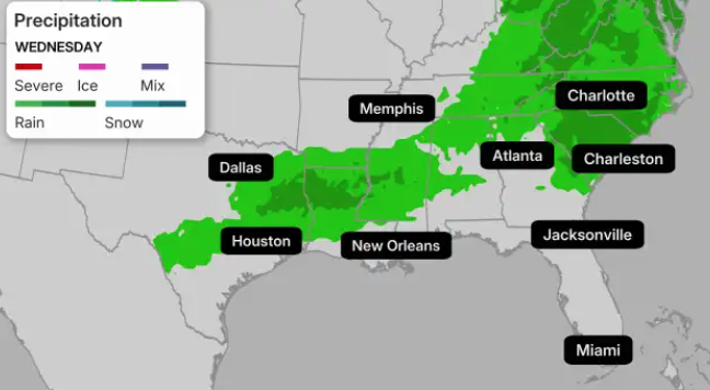 Here’s The Weather Channel’s forecast for rain this week across the Midwest and Southeast: