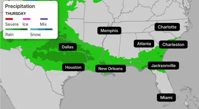 “The upcoming weather pattern in the United States, fueled by a strong subtropical jet stream, will bring some beneficial rain to the drought-stricken South,” meteorologist Ben Noll wrote on X, adding, “But it will be far from a drought-breaker.”
