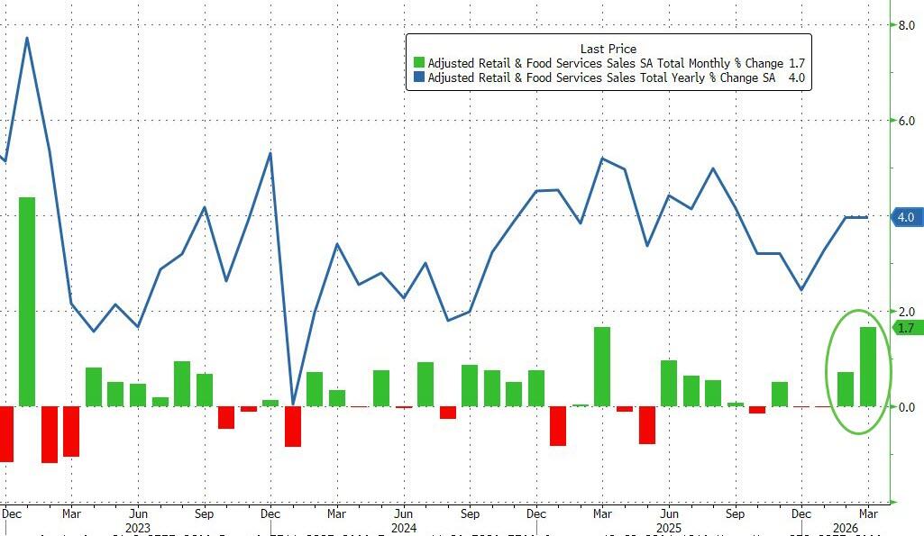 • 8:30 am: United States Mar Retail Sales Advance MoM, est. 1.4%, prior 0.6%