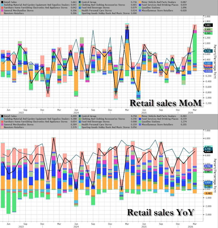 • 8:30 am: United States Mar Retail Sales Ex Auto MoM, est. 1.4%, prior 0.5%
