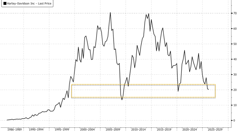 - Harley-Davidson Inc. (HOG) falls 13% after the company reported an unexpected drop in motorcycle shipments, extending its struggles in the face of weak demand and punishing tariffs.